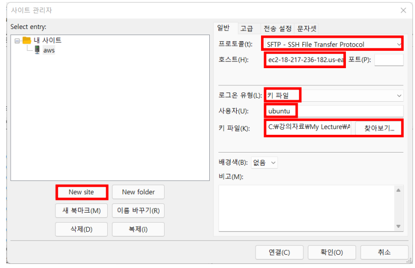④ 파일질라 실행 후 사이트 관리자 클릭